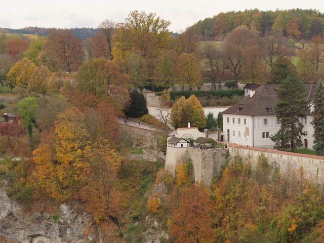 整個CK鎮最高點是彩繪塔,在彩繪塔360度可以眺望整個CK鎮的景色,此時正值深秋,周邊全是紅黃橙綠的樹木,加上紅磚屋景色充滿了童話故事一樣的村莊。參觀彩繪塔後就漫步到鎮內其它地方,其中克魯姆洛夫城堡就在彩繪塔對面,是必經之路,這裡更加多遊客到來,景色亦十分開揚,整個CK鎮亦可看到,之後漫步下山在鎮內閒逛,參觀小商店、及小村莊,反而小村偏離大街,遊客更加小,秋意正濃漫步村莊更添浪漫。
